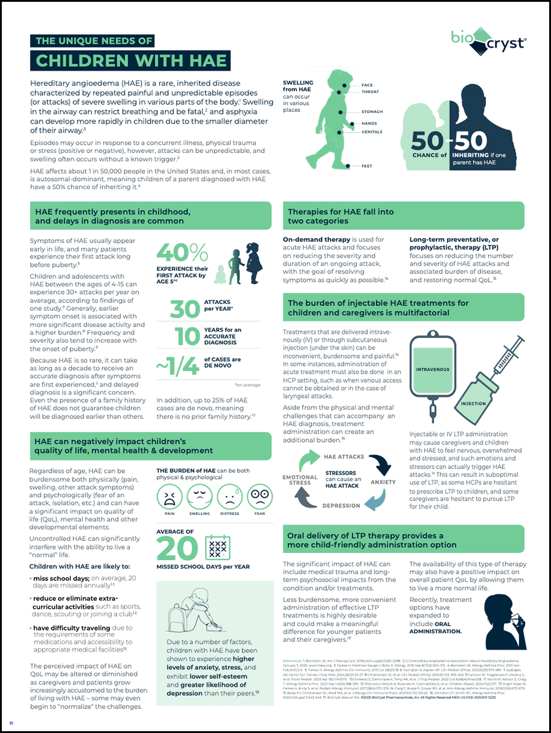 1. Bernstein JA. HAE update: epidemiology and burden of disease. Allergy Asthma Proc. 2013;34(1):3-6. 2. Bernstein JA. Severity of hereditary angioedema, prevalence, and diagnostic considerations. Am J Manag Care. 2018;24(14 Suppl):S292-S298.